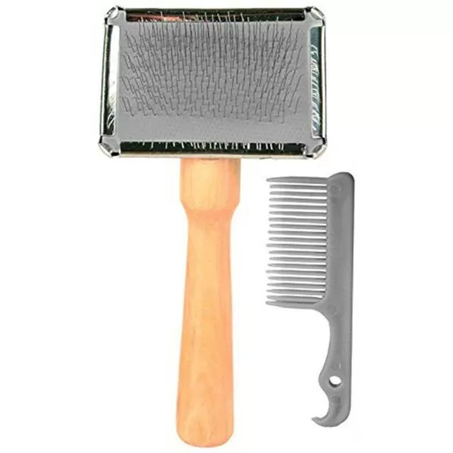 Četka za negu osnovnog i spoljnog krzna svih pasa, osim onih sa rundavim. Ima meke žičane zupce i drvenu dršku, a u pakovanju dolazi češljić za čišćenje četke. Dimenzije: 11x14cm.