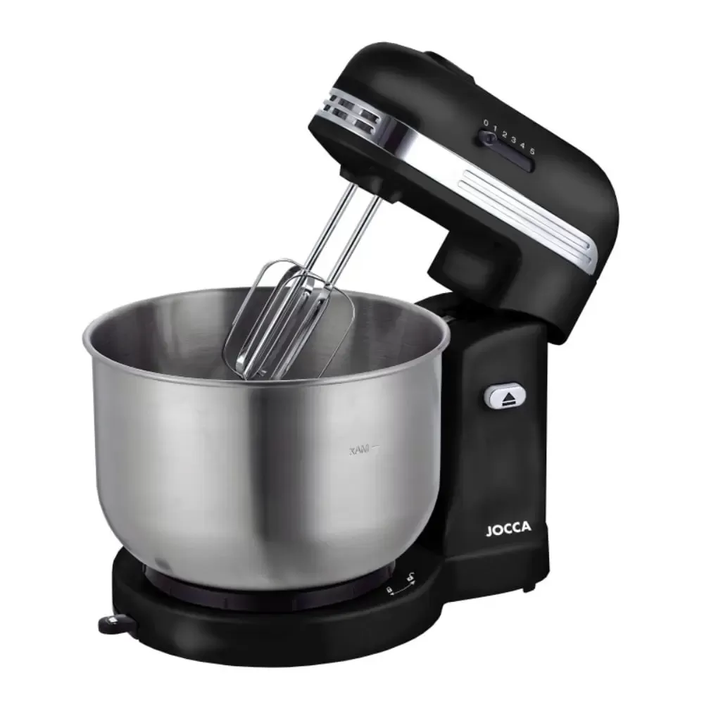 Jocca 1586N mikser za testo sa posudom od nerđajućeg čelika (3.5 L), pet brzina i samorotirajućom posudom sa levo/desno podesivim potisnikom za ravnomerno mešanje. Crni dizajn.