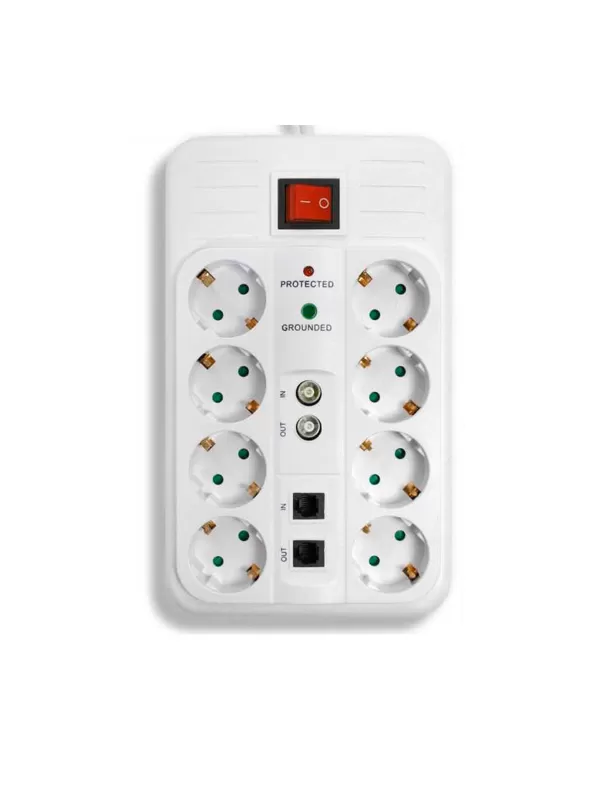 Osmostruka višenamenska prenosiva utičnica 16 A 250 V ~ 3500 W s prednaponskom zaštitom i zaštitom od preopterećenja - zaštita za telefon i TV
