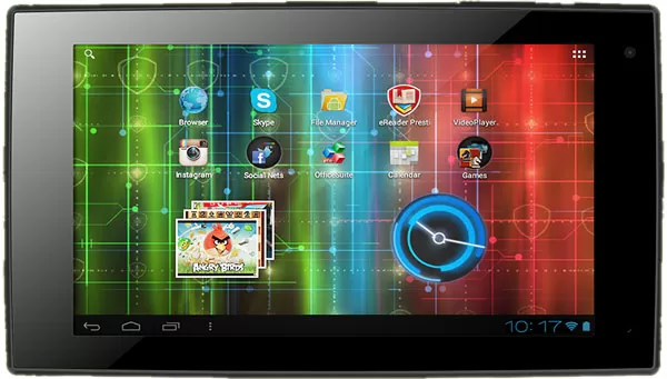 Instalirane aplikacije: Music, Video, Gallery, Calculator, Google Play, Browser, Explorer, E-Mail, Calendar, FreeNote, Stock Alert, Barcode Scanner, Currency Converter, Gmail, Google Maps, Office Suite, Blue, Angry Birds, Chess Free, 250+ Solitairs, Camera, Skype, Facebook, Twitter, Youtube, eBook, eReader Prestigio, SugarSync, OTA updates