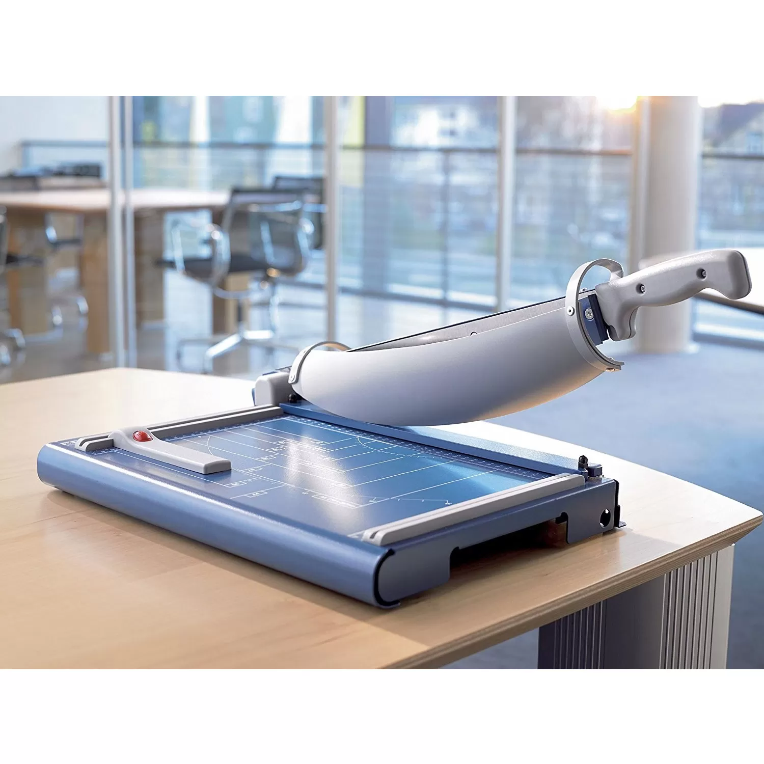 Dahle profesionalna giljotina za papir sa maksimalno zaštitom korisnika. Kapacitet sečenja: 35 listova papira ili 3.5 mm kartona, folija ili drugog sličnog materijala.