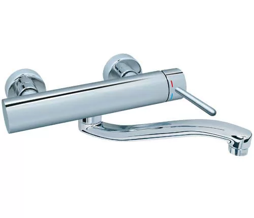 Jednoručna slavina za hladnu i toplu vodu, ispitanog kvaliteta, namenjena za sudoperu ili lavabo. Ima izliv <b>S</b> oblika dužine 200mm.