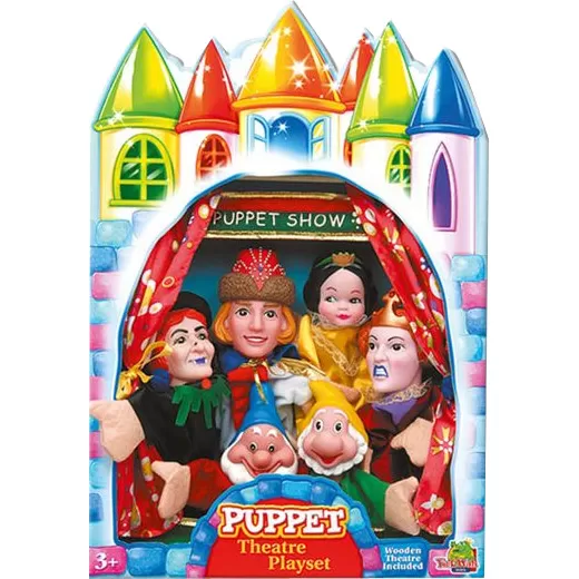 Paket : 6 lutaka iz bajke Snežana i 7 patuljaka, drveno mini pozorište