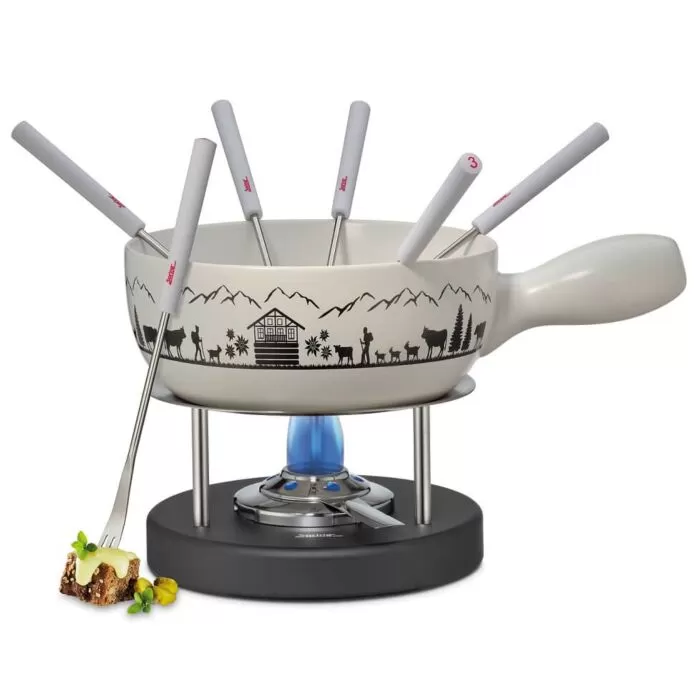Sadržaj seta: keramički lonac, gorionik, 6 viljuški