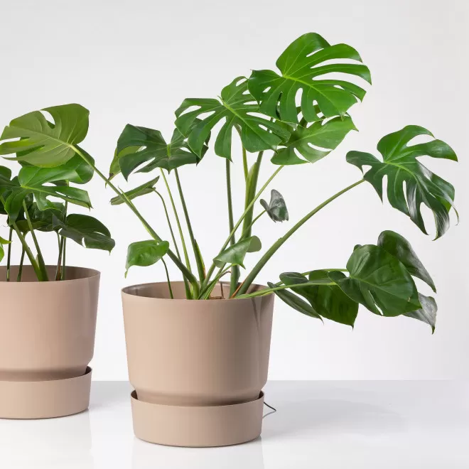Napravljena je od novog materijala koji u sebi sadrži elastin kako bi saksije izdržale extremne letnje temperature tako da slobodno možete da ih držite napolju.
