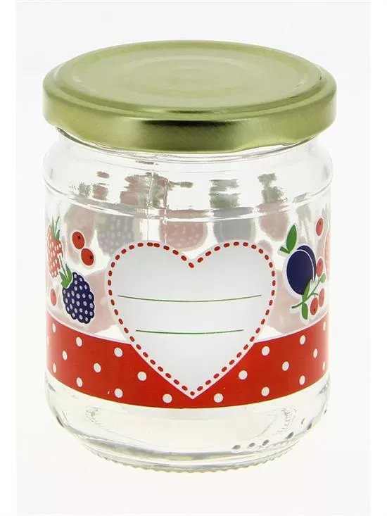 Staklena tegla sa motivima voća i poklopcem