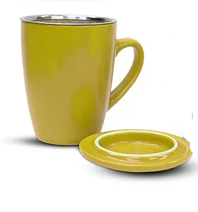 Šolja za čaj sa infuzerom i poklopcem Texell TTMI-330. Materijal: keramika i nerđajući čelik. Zapremina: 325ml