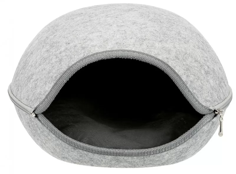Kućica za mačku Luna (40x24x46cm) je stabilnog oblika i ima udoban plišani jastuk unutra, baš kako Vaš ljubimac voli. Duž celog oboda kućice je rajsferšlus, tako da se krov može odvojiti i ostati otvorena ležaljka.