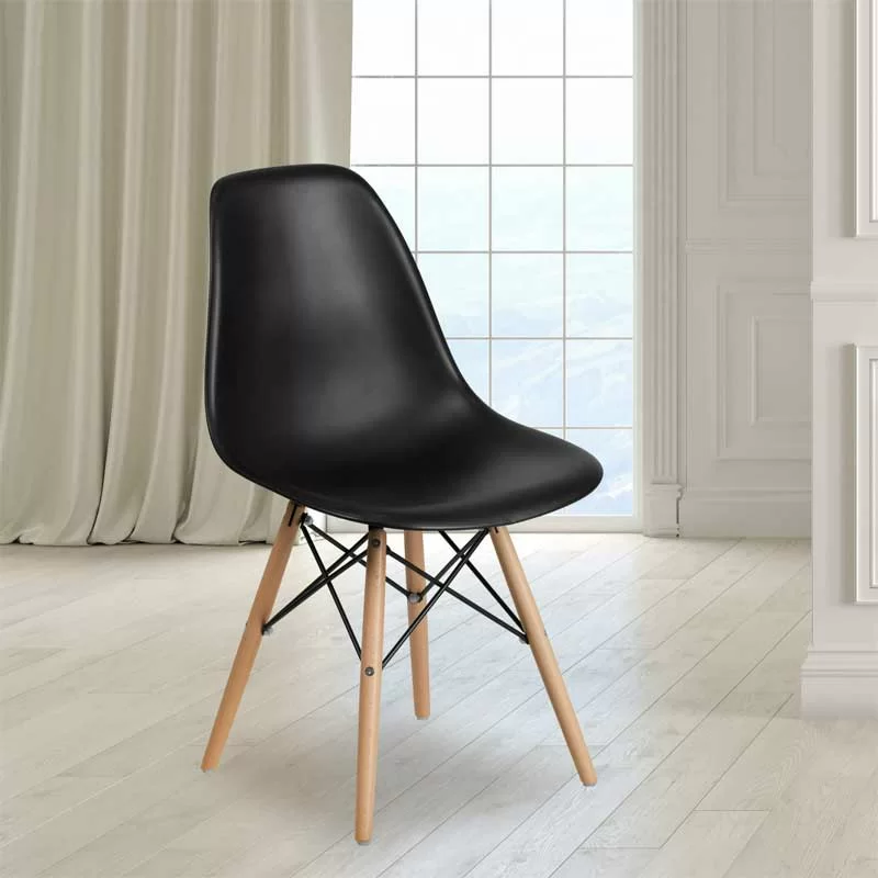 Trpezarijska stolica od livene plastike sa drvenim nogarima Black