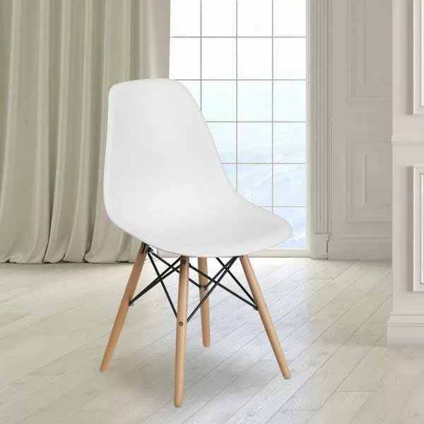 Trpezarijska stolica od livene plastike sa drvenim nogarima White