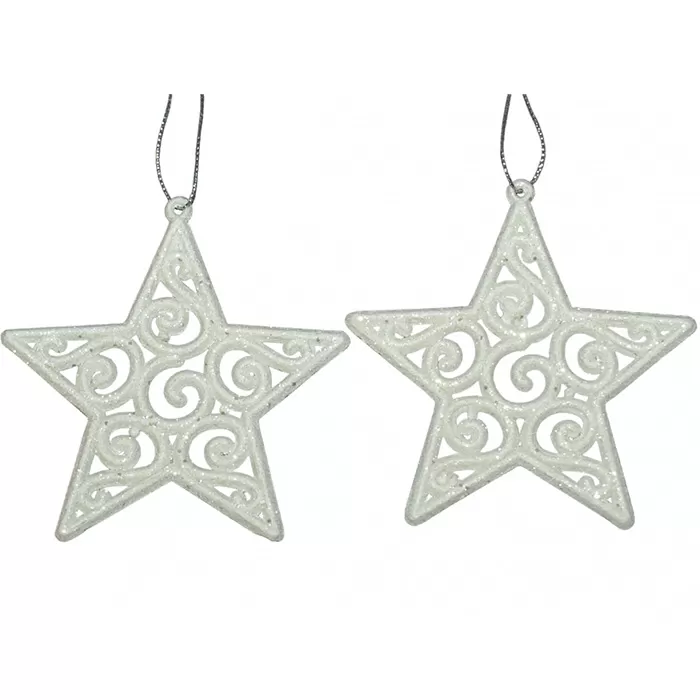 Ukrasi za jelku - zvezde u beloj boji set 2 komada