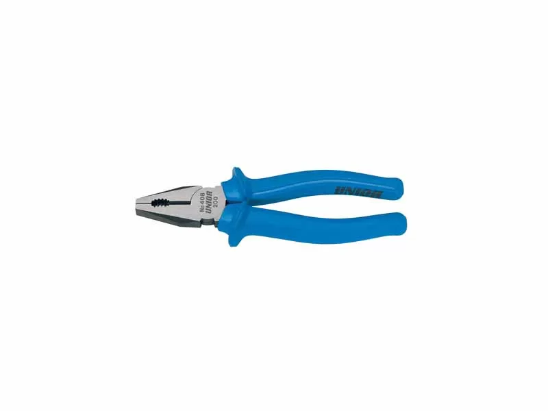 Unior kombinovana klešta sa plastičnom ručkom, izrađena od specijalnog alatnog čelika po standardu ISO 5746. Površina fosfatirana. Različite završne obrade i ergonomski oblikovane ručke daju efikasnost pri radu.