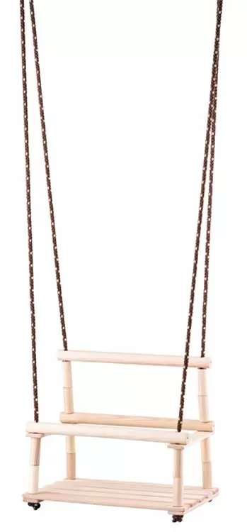 WOODY klasična drvena ljuljaška sa naslonom i ogradom predviđena je za decu stariju od 3 godine i mogu je koristiti sve dok ne dostignu 35kg.