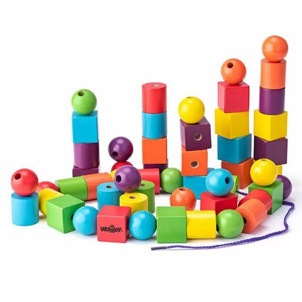 WOODY Drvene perle 60 komada za vežbu nizanja 90194