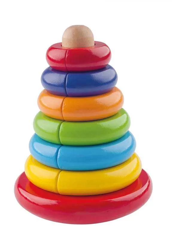 Drvena dindolina u duginim bojama sa obručima od kojih je svaki sastavljen iz 2 dela, a povezuju se pomoći magneta. Prilika da dete nešto nauči kroz igru! Dimenzije 17x23cm.