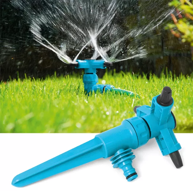 Trokaraka prskalica za travu koja vodu raspršuje kroz 12 rupa i pokriva površinu od oko 120 kvm.
