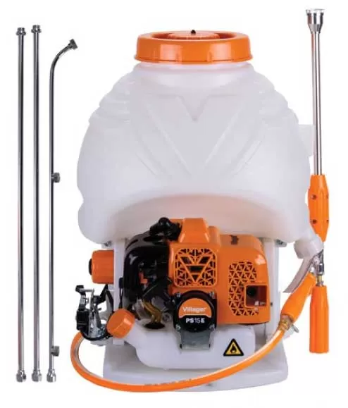 Motorna leđna prskalica Villager PS 15E dolazi sa dvotaktnim motorom zapremine 25 cm³. Masa je svega 9 kg. Rezervoar za hemijske rastvore zapremine 15 litara.