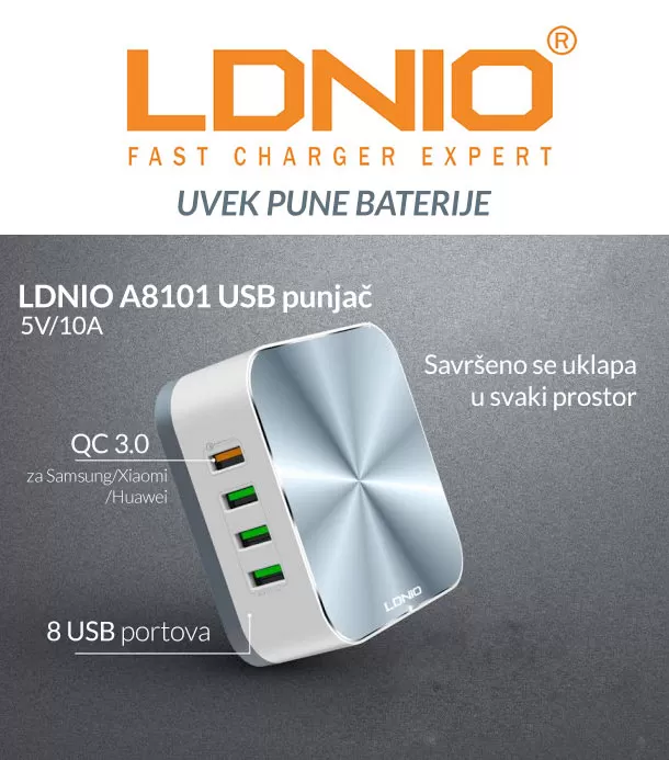 Stoni USB Punjač Sa 8 Portova Za Baterije Telefona Ldnio A8101