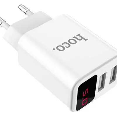 Univerzalni zidni punjač sa dva USB konektora. Daje izlaznu struju od 2.1A i 5V. Pogodan za sve mobilne telefone, tablete i druge elektronske uređaje.
