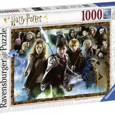Ravensburger premium puzzle od 1000 delova, kada se sklopi, prikazaće glavne likove iz knjiga i filmova o Harry Potter-u, i pozitivce i negativce....