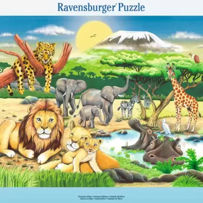 Afričke životinje su u savani. Tu su lavovi,leopard, žirafa, nilski konji, slonovi, roda. Slagalice sadrže 36 delova, uzrast: 4+