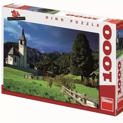 Puzzle u 1000 delova sa motivom italijanskih Dolomita. Dimenzije sklopljene slike: 66 x 47 cm.