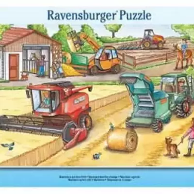 Ravensburger puzzle prikazuju kombajn i presu za baliranje sena. Puzzle imaju 15 delova, uzrast: 3+