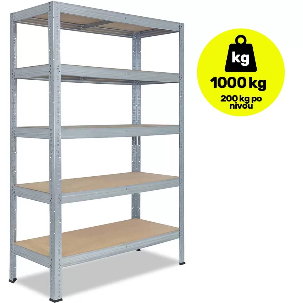 Praktična stalaža velike nosivosti. Ima 5 polica od kojih svaka može da drži po 200kg tereta. Odlična za prodavnic, magacine, podrume, radionice...