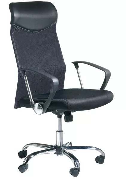 Udobna kancelarijska stolica sa podstavljenim mrežastim sedištem, mrežastim naslonom kao i hromiranom bazom. Sa gasnim podešavanjem visine.