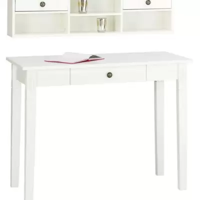 Luksuzan sto od belo lakiranog drveta, sa gornjim policama. Kombinacija stola i gornjih polica čini elegantan toaletni ili vrlo funkcionalan radni...