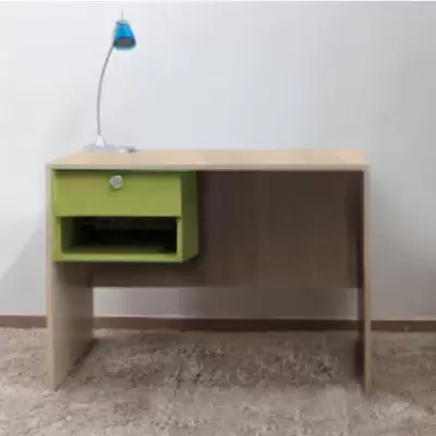 Radni sto modernog dizajna, izrađen od iverice i medijapana. Ima jednu fioku sa graničnikom koji sprečava njeno slučajno izvlačenje iz ležišta.