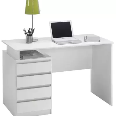 Elegantan radni sto sa 4 fioke, napravljen od iverice bele boje i melamina. Dimenzije stola su 118x76x60cm.