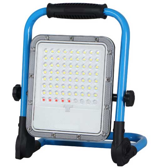 Prenosni LED reflektor sa punjivom baterijom kapaciteta 5000mAh. Osim običnog svetla koje može da radi u tri različita intenziteta, ovaj reflektor poseduje crveno i zeleno svetlo.