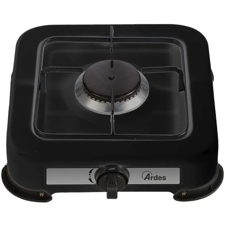 Plinski rešo crne boje za upotrebu na otvorenom. Obojena čelična konstrukcija sa plastičnim nogama, aluminijumskim gorionikom, emajliranim poklopcem gorionika i rešetkom koja se može ukloniti. Podesivi plamen.