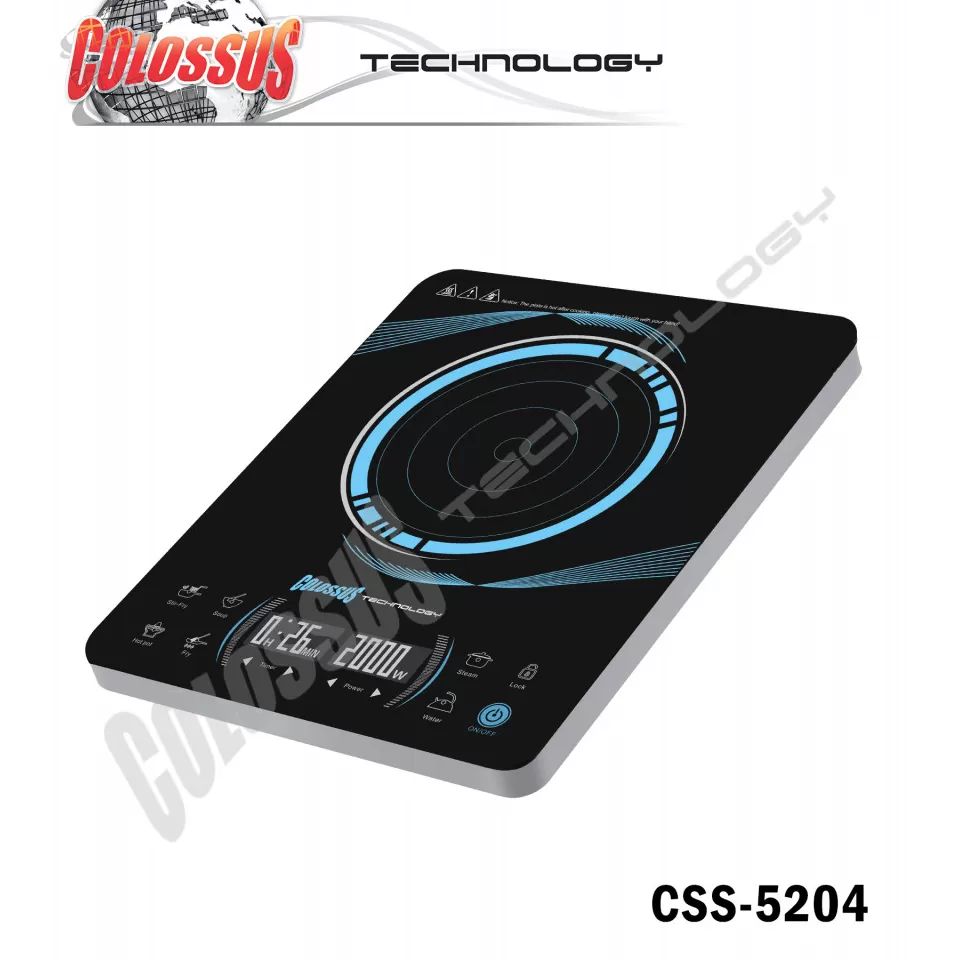 Indukcioni rešo Colossus CSS-5204, snage 2000W, sa touch funkcijom, LED ekranom, kristalnom pločom i tajmerom do 240 minuta. Nudi funkciju zaključavanja za dodatnu sigurnost i radi na naponu od 220-240V.