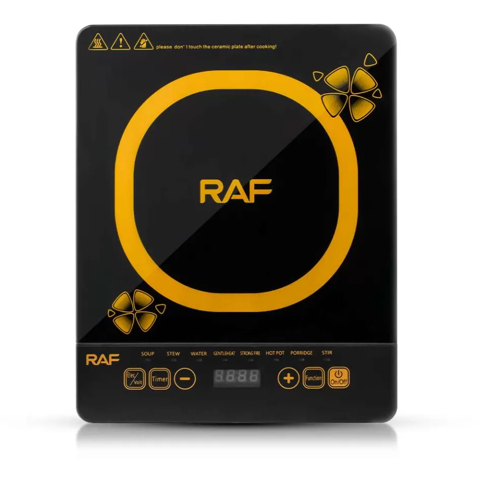 RAF R.8016 INDUKCIONI REŠO 2000W. Snaga: 2000W. Keramička ploča – prečnik 28 cm. Tajmer: do 8 nivoa. Upravljanje na dodir (touch control). Dužina kabla: 1,2 m. Napon i frekvencija: 220–240V, 50Hz