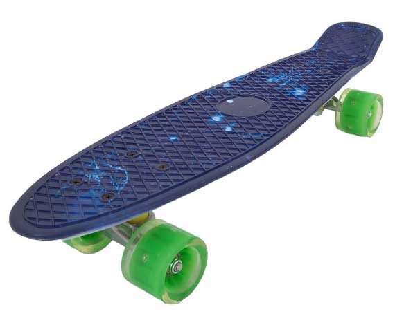 Sjajan izbor za mališane koji žele da ovladaju veštinama vožnje skejtborda. Točkovi koji svetle su posebno atraktivni tokom vožnje u večernjim satima. Daska je od kvalitetne plastike, nosači točkova su aluminijumski.