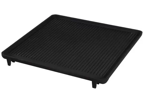 Gusana roštilj ploča sa rebrastom površinom. Dimenzije ove ploče su 39x39cm, a napravljena je od livenog gvožđa.