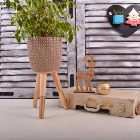 Drveni stalak sa bež saksijom otvora 20 cm
