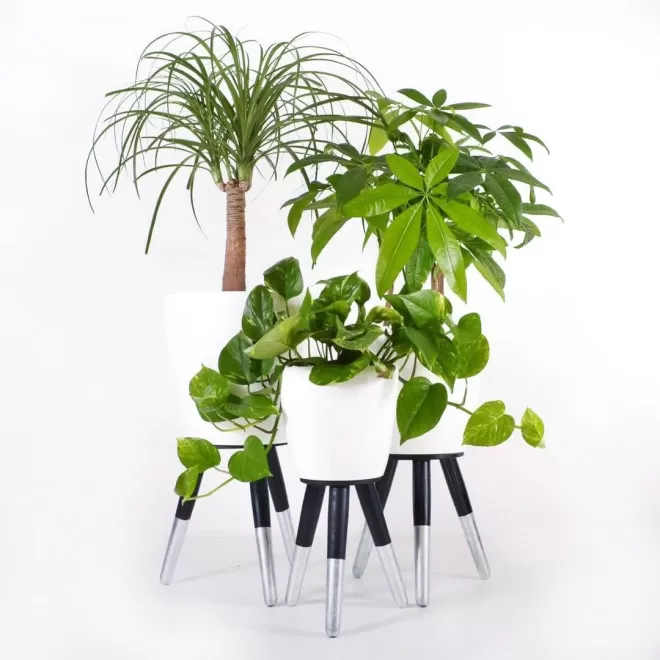 Drveni stalak srebrno-crni sa belom saksijom 25cm
