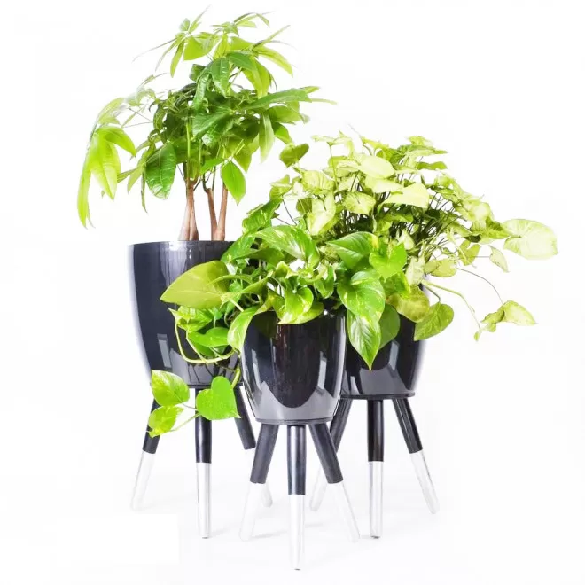 Drveni stalak srebrno-crni sa crnom saksijom 25cm