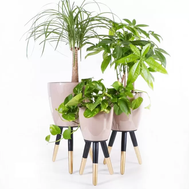 Drveni stalak zlatno-crni sa bež saksijom 30 cm