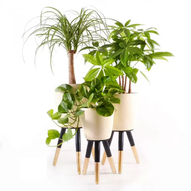 Drveni stalak zlatno-crni sa krem saksijom 20 cm