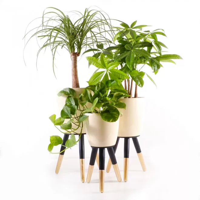 Drveni stalak zlatno-crni sa krem saksijom 30 cm