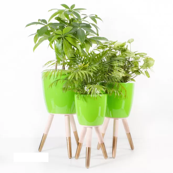 Drveni zlatno-beli stalak sa zelenom saksijom 20cm