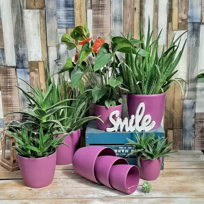 Komplet saksija u mat roze boji 8 komada
