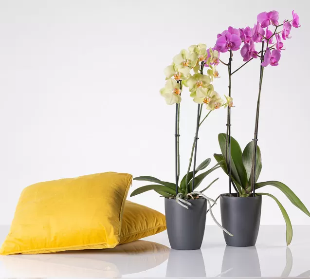 Saksija sa uzdignutim dnom koji služi da se providna saksija nasloni na njega kako bi se posle potapanja orhideje zaostale kapljice ocedile a pritom sve dole što ostane polako isparava i pravi orhideji dodatnu mikro klimu - vlažnost