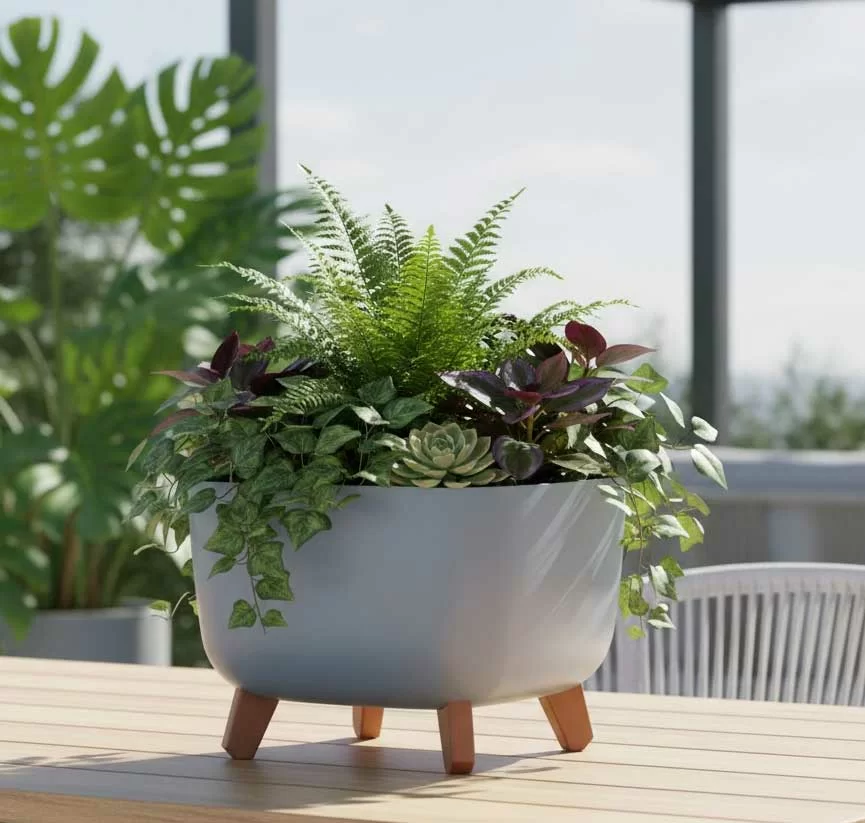 Prepoznatljiva po svom obliku i postolju na četiri nožice koje imitiraju drvo, ova saksija podiže vaše biljke na pijedestal, bukvalno i stilski. Dolazi sa posebnim umetkom koji odvaja koren od viška vode sprečavajući truljenje.