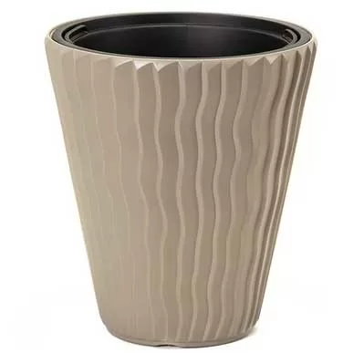Specifična po svojoj jedinstvenoj teksturi koja imitira blage talase, ova saksija nije samo dom za vaše biljke, već i upečatljiv umetnički detalj. Talasasta struktura stvara zanimljivu igru svetlosti i senke, čineći saksiju atraktivnom iz svakog ugla.