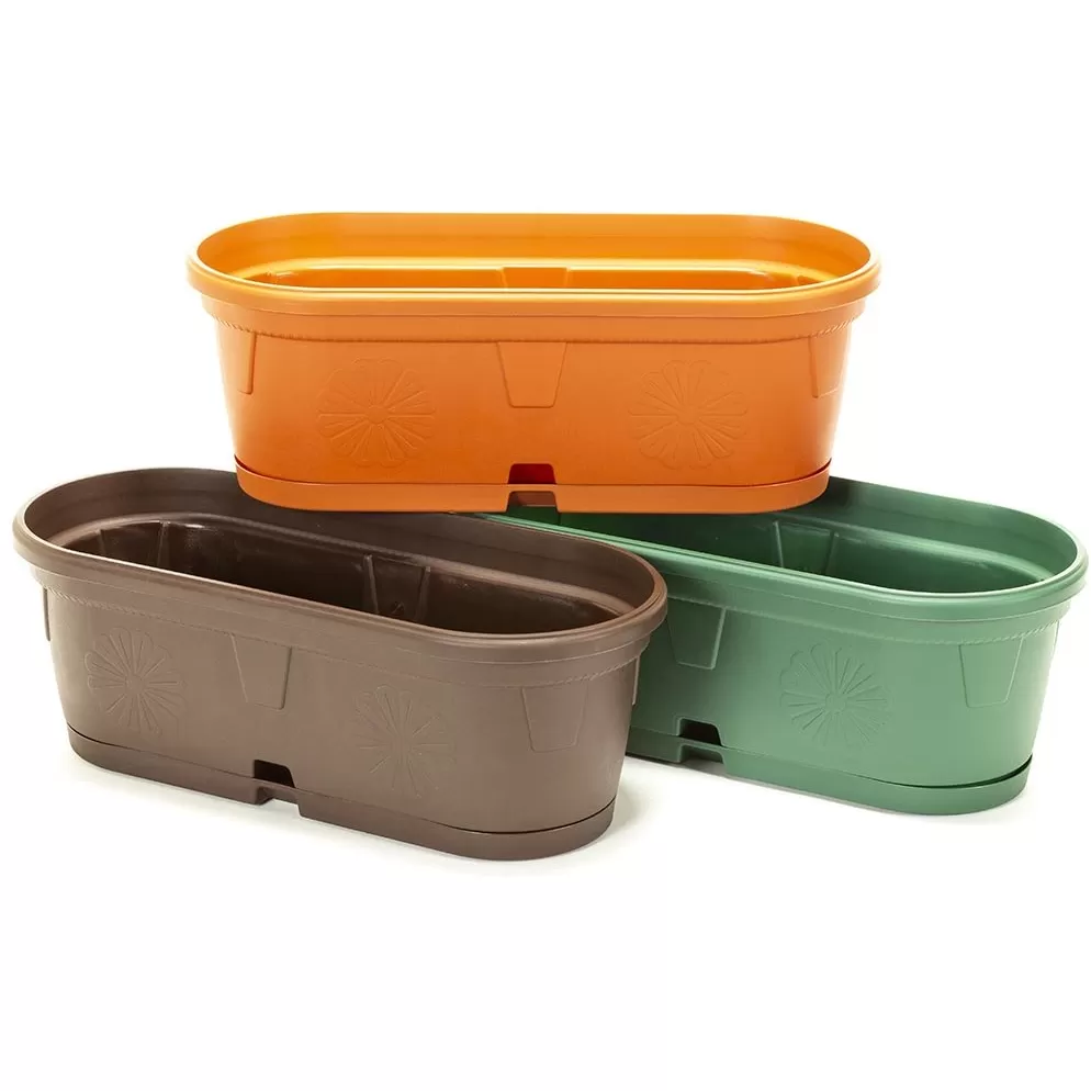 Ova žardinjenjera sa podmetačem je pogodna za ulepšavanje i dekorisanje Vaših terasa, balkona i dvorišta. Dimenzije: š35 x d15 x v13cm.